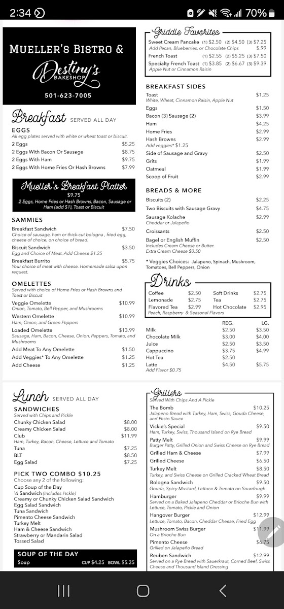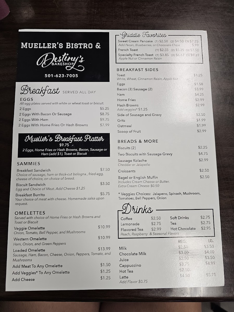 Welcome to Mueller's Bistro & Bakery, a charming culinary gem nestled in Hot Springs, Arkansas. This bistro offers a delightful blend of enticing flavors and homely atmosphere, making it an ideal spot for both breakfast and lunch.